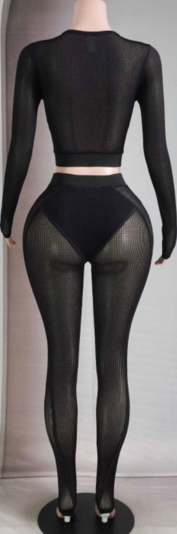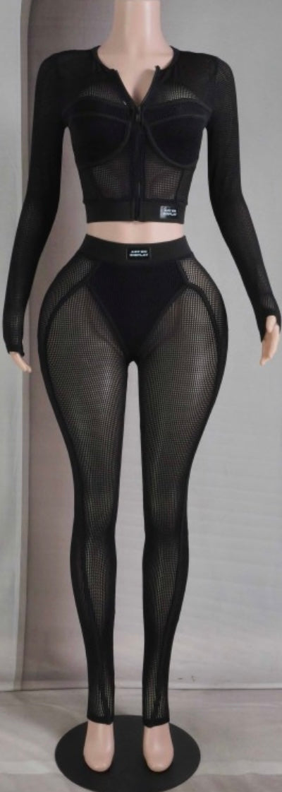 Long sleeve popcorn mesh label detail legging set.