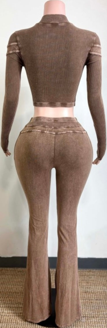 Mineral wash zip-up cropped jacket & flare lounge pant set.