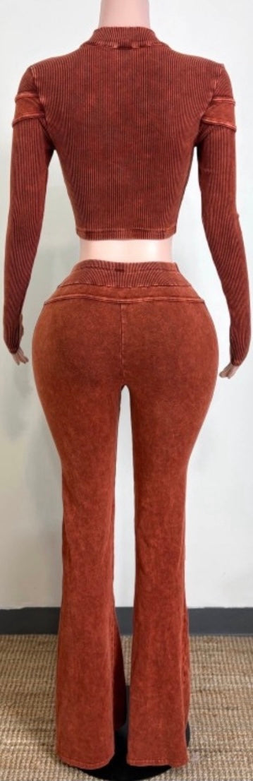 Mineral wash zip-up cropped jacket & flare lounge pant set.