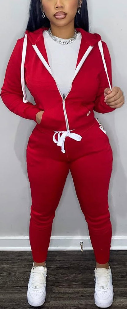 2pc solid fleece jogging suit set feat. a zip up hoodie with pockets.